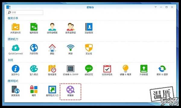 當你把資料放到相關資料夾之後,你需要到Synology DS215j 管理控制台中,找到 “媒體庫" 這個應用程式。