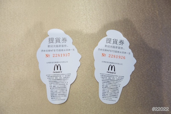 還有2張麥當勞冰淇淋的兌換券耶!