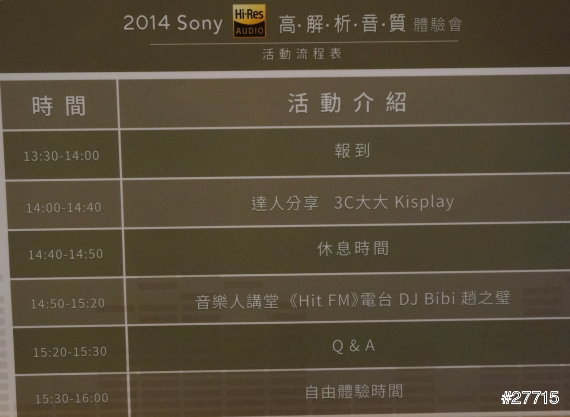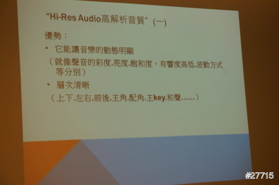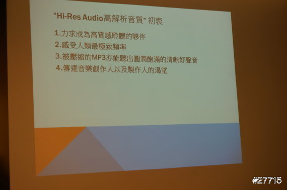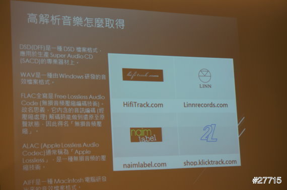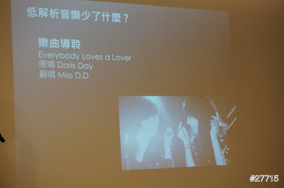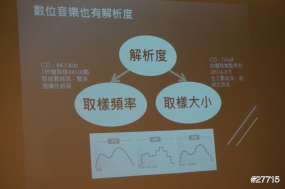 Kisplay開頭說了很多聲音的組成和數位音樂解析度的知識,正當我還在霧煞煞時,Kisplay放了Everybody Lovers a Lover的低解析和高解析的版本讓我們試聽,天呀!! 音效差異真的非常非常的大,低解析的音樂聲音很平淡,高解析的音樂聲音多了立體感,聲音更加的飽和圓潤,會讓人有繼續想把這首歌聽完的衝動。