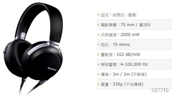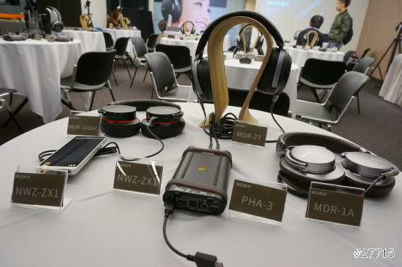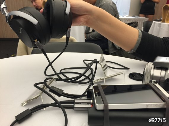 ▼MDR-Z7和一般耳機不同,採用平衡連接式耳機線,讓左右聲道完整分離,耳機兩邊不會互相干擾,兩邊耳機都需要接上耳機線,透過PHA-3(耳機擴大器)與NWZ-ZX1(數位隨身聽)來播放音樂。