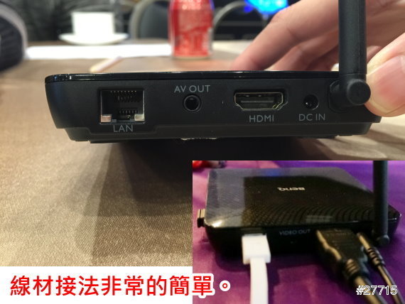 ▼JM-250電視上網精靈的電源、HDMI孔、有線/無線網路和AV輸出。線材的接法非常容易,不會複雜。