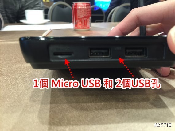 ▼JM-250電視上網精靈的側邊,有1個Micro USB (機器內建8G,如果空間不夠用可外接Micro USB卡,最大可擴充64GB) 和2個USB孔,使用無線遙控鼠候會佔用掉一個USB孔來接發射器。