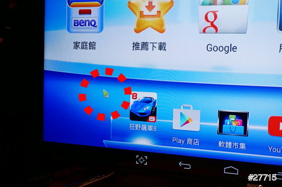▼注意到電視螢幕上有個鼠標嗎? 這時候正是我們在測試無線遙控鼠的滑鼠功能,這感覺就像把電視當成電腦螢幕般使用。