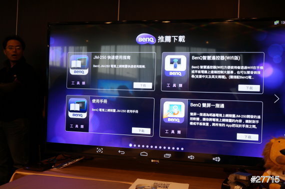 要讓手機透過JM-250和電視互動前,一定要先安裝BenQ JM-250的APP: 隨你通、雙頻一指通、智慧遙控器和照片通。