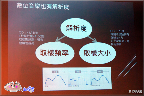 ▼今天真的是得到新知呀~原來數位音樂也有解析度!!而這解析度還是從「取樣頻率」、「取樣大小」取出來的數值及圖形判斷。
