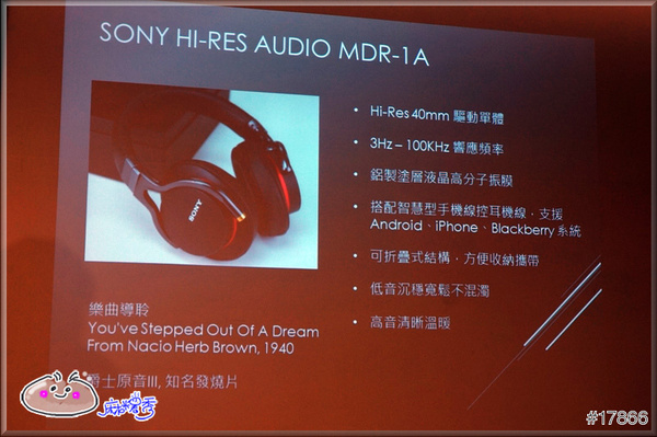 ▼先看到SONY MDR-1A這個產品,它算是比較親民的產品,音質也相當的讚哦!細緻的聲音都可以聽的很清楚哦!