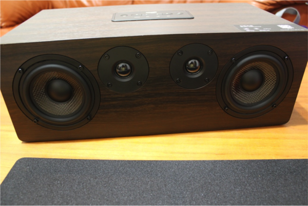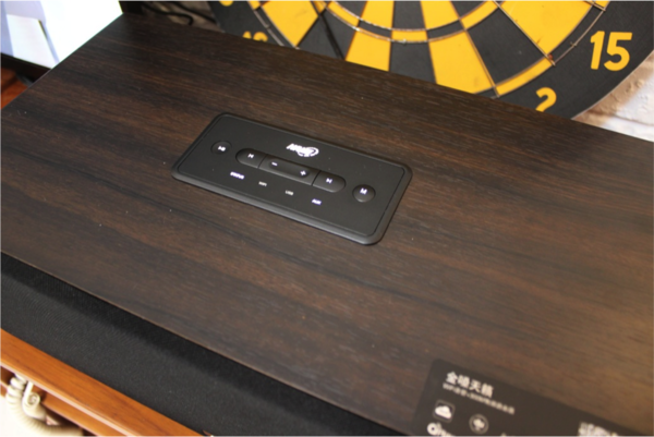 ▲ 金嗓天籟音響主體,採用木質音箱密度高,聲音較不失真,且外皮還多貼了一層胡桃木紋質的貼皮,質感看起來很好。