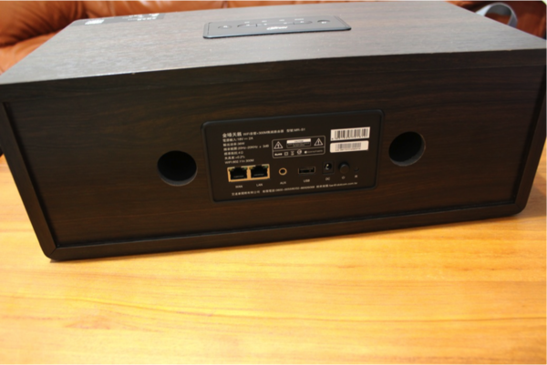 ▲背面則是線材連接區,可以看到開關、電源、AUX音源及 USB、網路孔等裝置