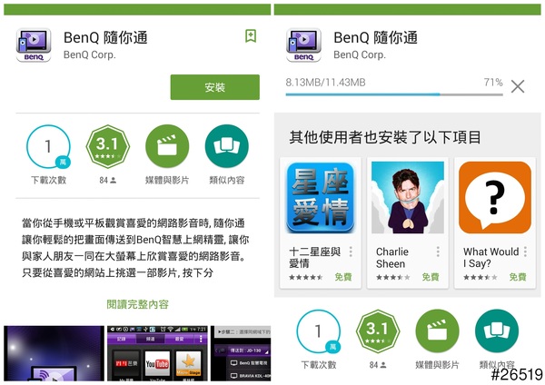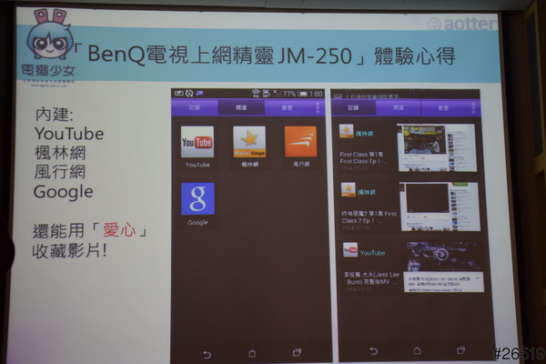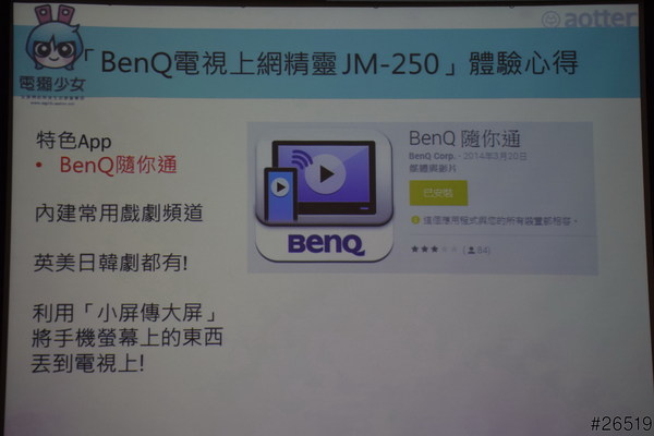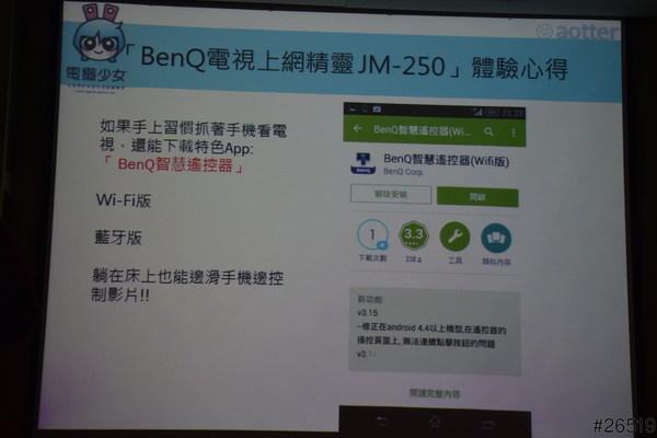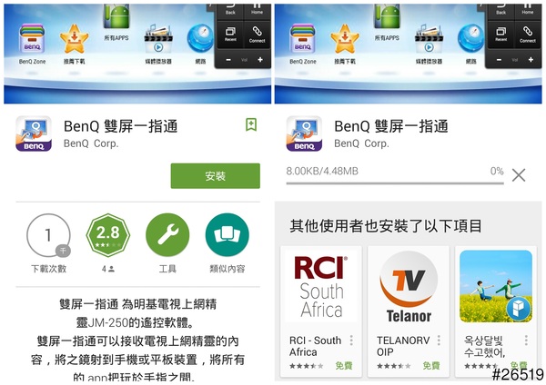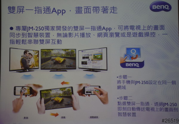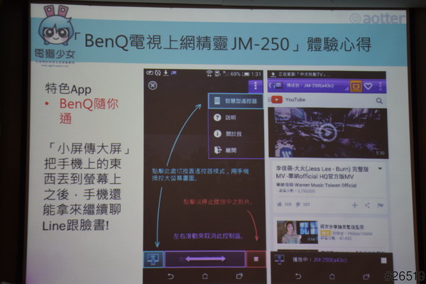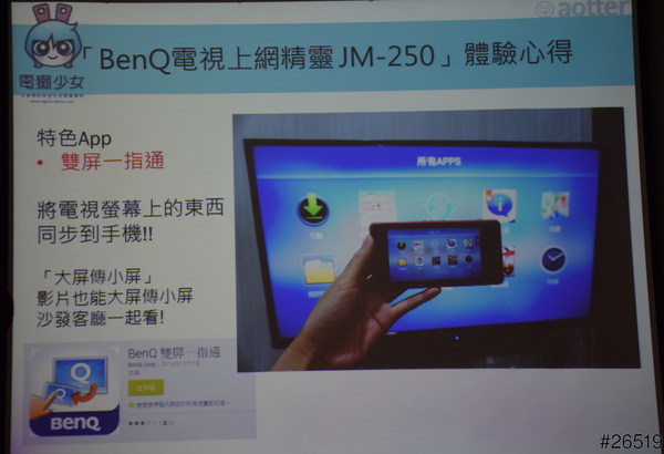 ▼BenQ獨家APP 雙屏一指通 : 哇 很特別的 APP 喔,可以將電視螢幕上