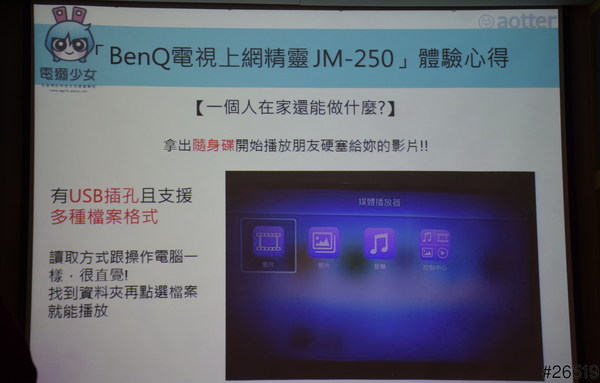 與  BenQ JM-250 一樣,而 MOD 主要播放的媒體都是由 網路直播,外接的支