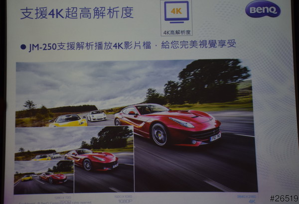 特殊規格  : 播放器 及 MOD 都只支援到 1080P , BenQ JM-250 的4K/2K真的很強悍,