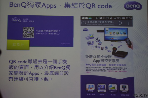 ▼BenQ獨家APP 輕鬆掃描 : 所有的APP 只要掃瞄QR code 就可以