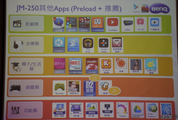 ▼使用推薦 多采多姿: BenQ JM-250 也已經內建了許多的 APP 也分為