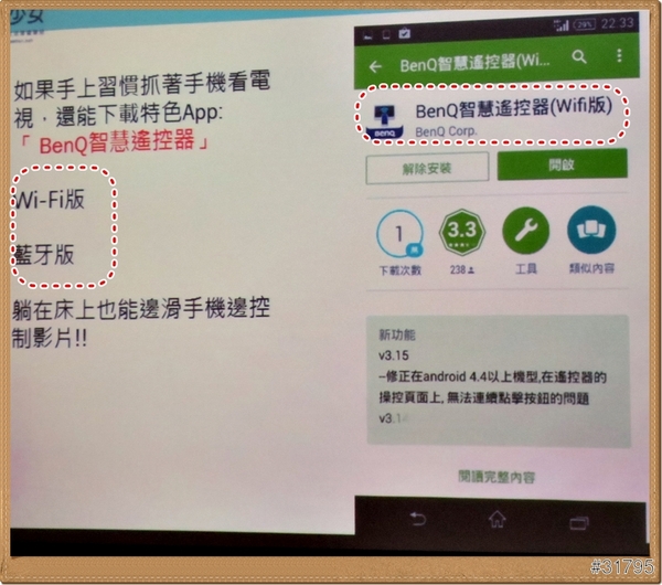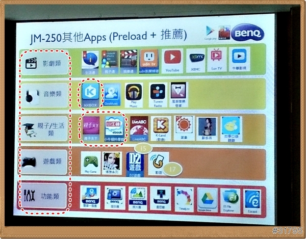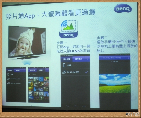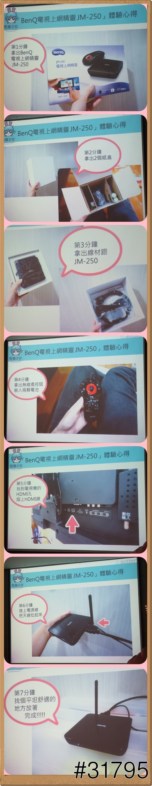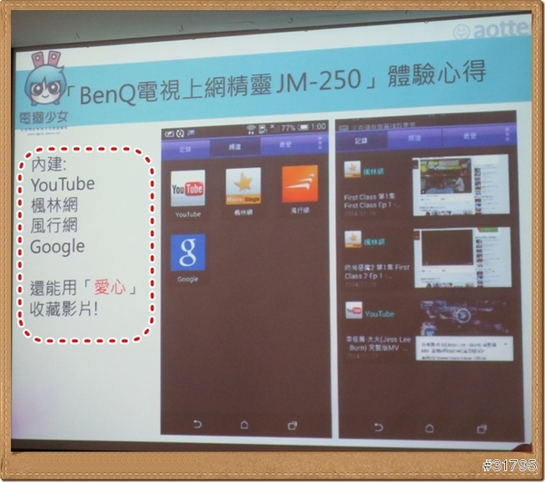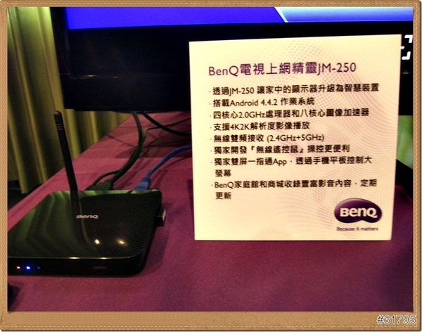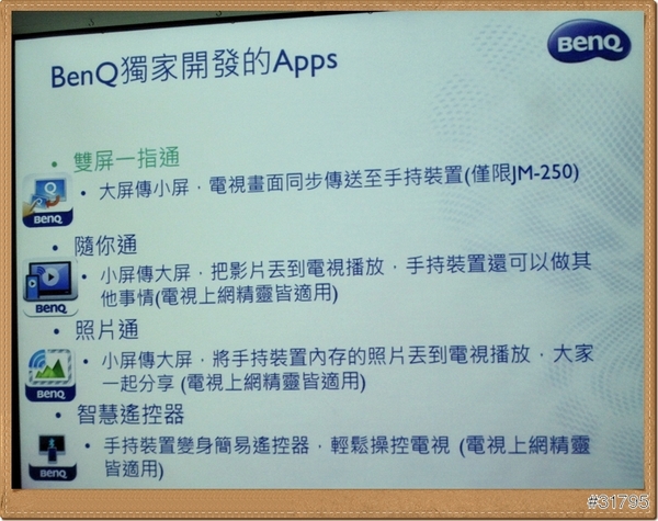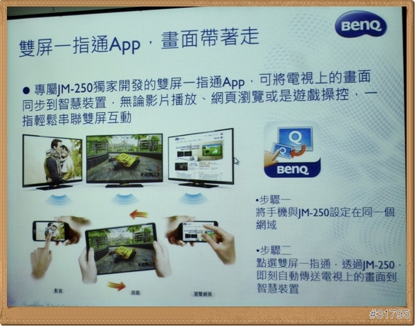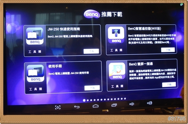 BenQ的液晶電視上面就播放著他建議下載的App,可以更了解JM-250如何使用及應用