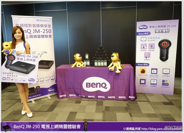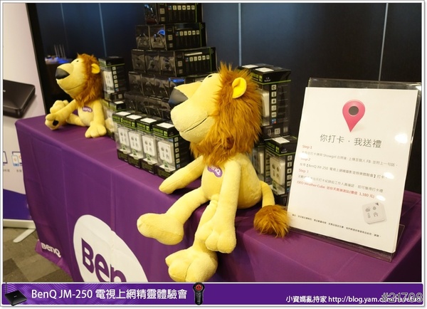 入場的右手邊布置成打卡區,美美的麻豆展示著BenQ JM-250電視上網精靈的展示牌與大家合照