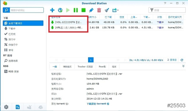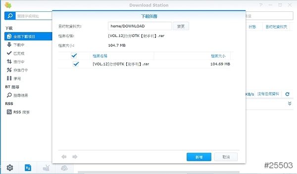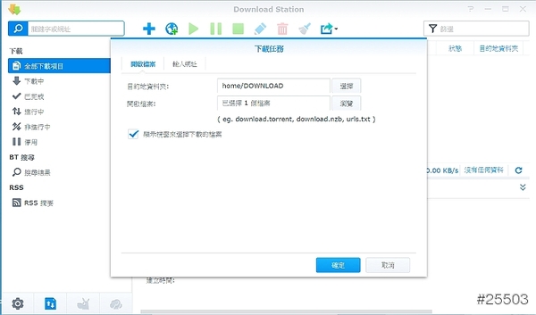 一樣輸入網址,即可開始下載,另外不管是Download Station或DS download都支援bt 磁力鏈(Magnet URI)。