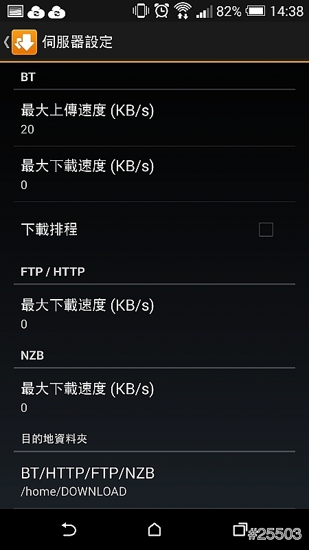 可以看到還可以設定上下傳速度,及更改目的地資料夾。