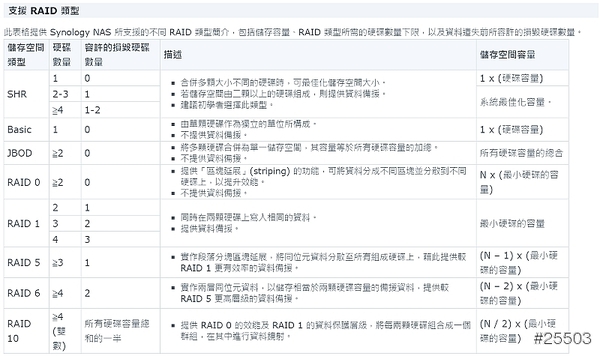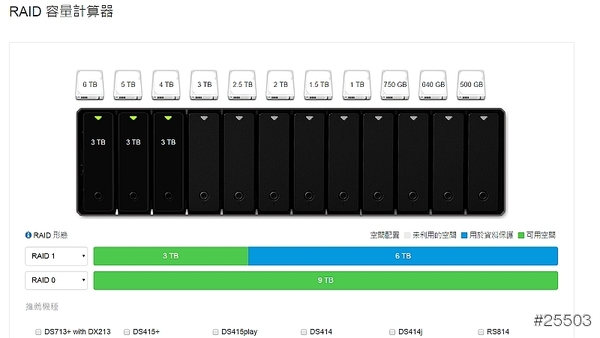 另外Synology有提供硬碟容量計算官網,讓你了解放了幾顆硬碟進去,組什麼RAID類型,會有多少容量,這個網站都一清二楚,非常方便。