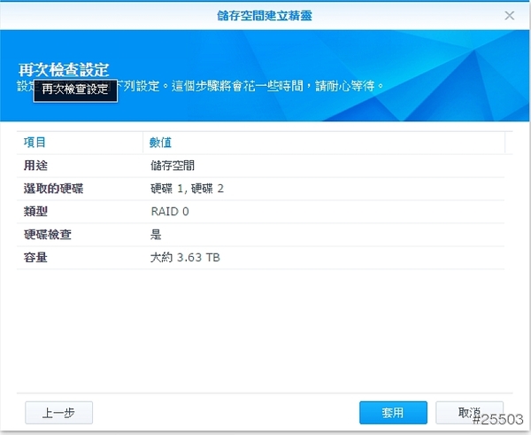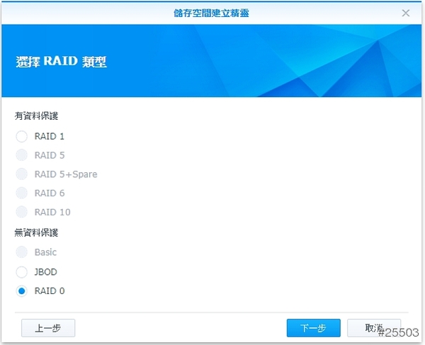 那我們來開始更改RAID類型,由於我們主要要來測試效能,所以組RAID 0。