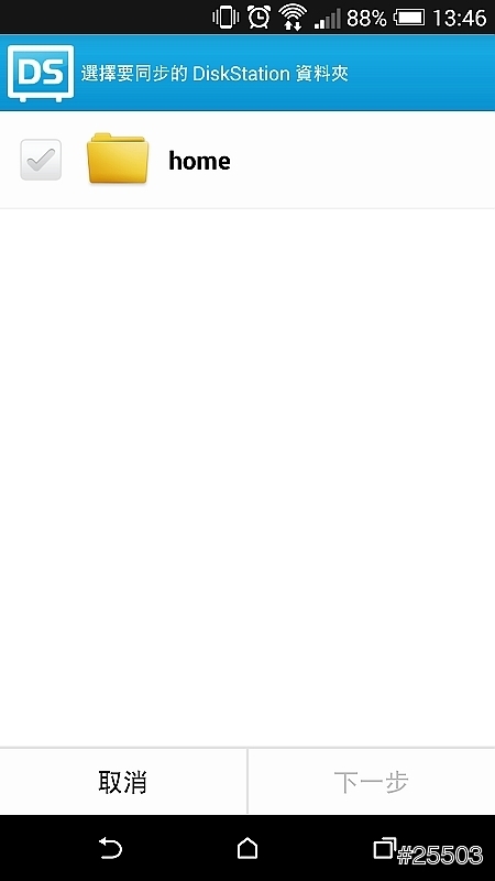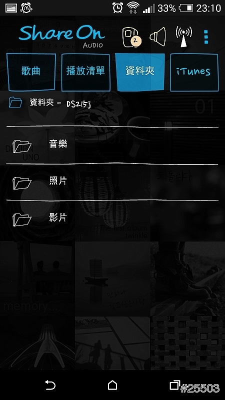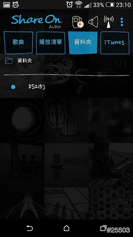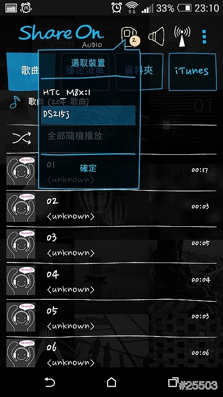 這次是用Share ON Audio這一個APP來示範DLNA撥放,如果你的手機撥放器不支援時,可以可慮使用這一套APP,可以看到選取裝置裡已經有DS215j,並點選下去。