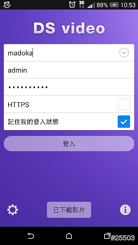 這裡用m8來當範例,連上DS video之後打上id,再輸入你的使用者帳密之後,按下登入,即可使用。