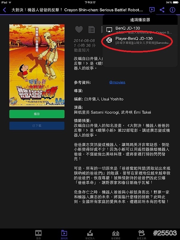 也是一樣透過DS VIDEO即可進行串流撥放,一樣點選撥放器,電視畫面就會跑出來了。