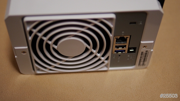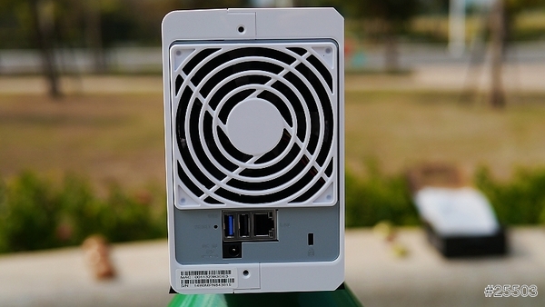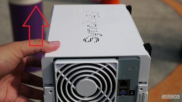 可以看到NAS本身設計白色簡單好看,而且兩側皆有刻上鏤空的Synology Logo,也能夠增加散熱,雖然現在冬天感受不太出來,不過夏天應該就會感受比較明顯。