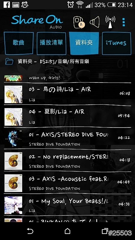 就可以看到擺在NAS裡的音樂,也可以正常的顯示歌名及封面。