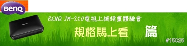 在還沒正式進入今天BenQ電視上網精靈JM-250體驗會之前,筆者特地上網了解一下今天主角的規格及特色,所謂知己知彼,一來能對BenQ電視上網精靈JM-250有進一步的認知與了解,二來也更能快速融入整場體驗會的情境中。