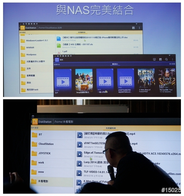 ▼阿達還提出了JM-250另一個超好用的功能,它可以結合NAS系統,輕鬆讀取NAS裡面的影音或是照片,完美整合播放,充分利用雲端網路的便利。阿達現場連線到他自己家中的NAS伺服器上,當場展示給網友們看,這個功能真的很棒,真的體驗到了雲端世界的便利。