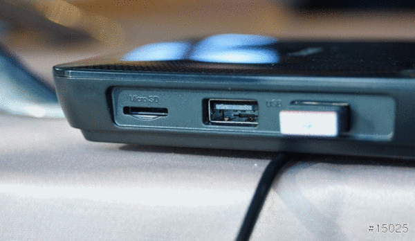 ▼而另一側邊則有MicroSD擴充槽,以及兩孔的USB插槽。