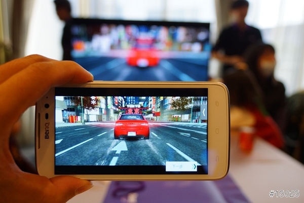 ▼這個遊戲進行,要充分利用BENQ 雙屏一指通的功能,這時手機就能充當起遙控手把,這樣就能進行賽車的操控。