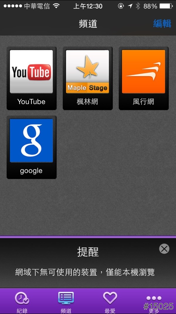 ▼隨你通APP目前提供Youtube,風行網,楓林網,GOOGLE網站等頻道,可供選擇。