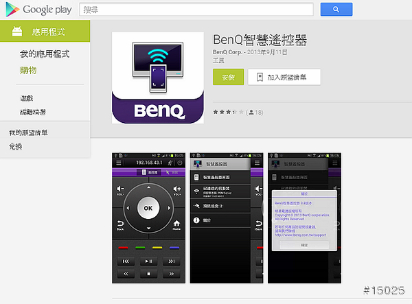▼下載很方便,進入GOOGLE PLAY 或 APP STORE,搜尋BENQ 智慧遙控器就能加以下載,而且是免費的。