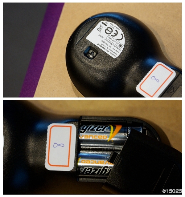 ▼無線遙控鼠的背面,可以看到和一般光學滑鼠一樣,前有光學感應器,而後面則是要裝兩顆AA電池,提供無線的動力來源。