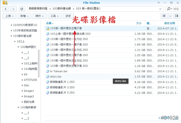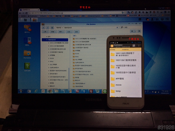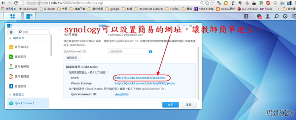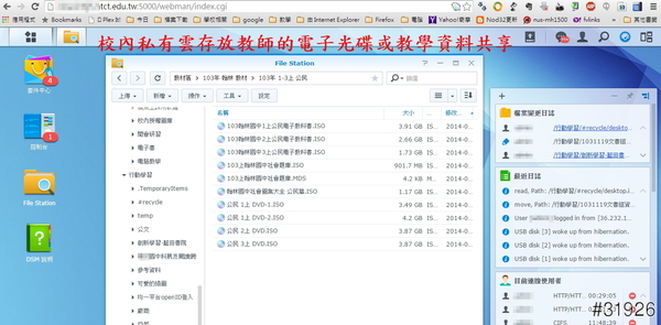 去年為了做行動學習買了DS414機型(暑假做成果做資料,大伙在家在學校都靠它了),專門存放相關教案、教學影片、平板的資料庫、youtube自動下載收集區、moodle網站、電子書網站、校外研習資料交換區、成果相片展示平台。