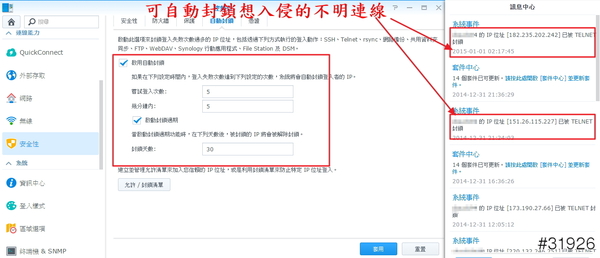 20 QuickConnect可以省下IP相關設定,讓網管不用偒腦筋,連線的人更方便,內建防火牆,可以自動封鎖擋掉許多外來測試的駭客