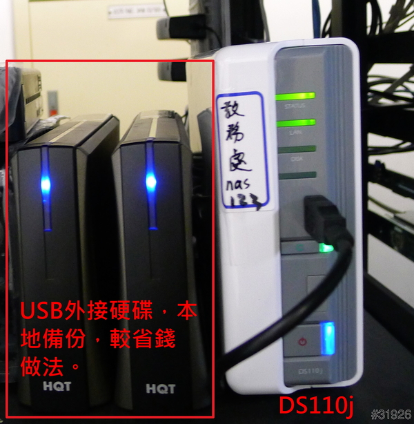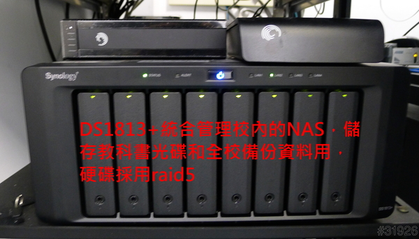 學務處也買了一台日系B牌NAS,功能就只是單純放學校活動照片、影片、文件資料備份,感覺上就沒有synology nas好用;輔導室也買一台DS211j,主任用完滿意極了,支援手機平板、備份個人PC資料、公文資料流通大大增加效率,隔年再加買較好的DS212,同時硬碟全部加大,組raid1來保護資料安全(輔導室多年來的成果,如果不見可是很痛苦的,同事前陣子筆電硬碟送修,報價2-3萬),舊型機子DS211j用來異地備份新的DS213+。