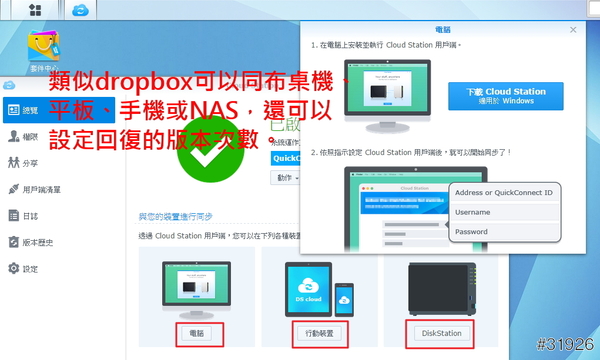 所以synology是一台超穩定的硬體、手機、平板豐富 的APP應用、直覺圖形化使用者介面、超強的檔案管理與資料備份保護、行動裝置相薄上傳同步、絕佳的多媒體資料中心,對行動學習是不可或缺的雲端工具,synology NAS真的是物超所值的MIT精品