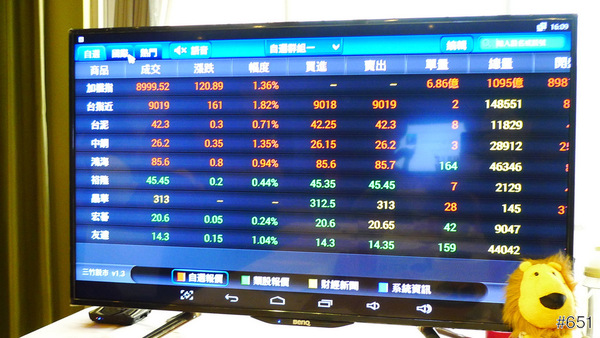 最後還在Google Play 下載了股市看盤軟體,這是一個值得大推的地方,因為其運作順暢度不亞於平版,且對視力有限的長輩們,有非常好的使用者體驗