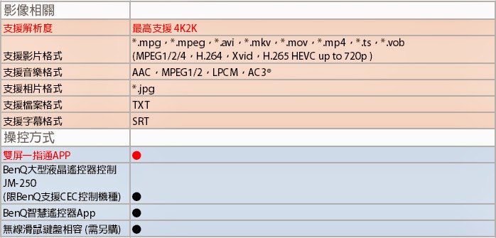 ▼ BenQ JM-250 具備強大的影音播放能力,可以播放 4K 影片,並且支援非常多影音格式規格,像是 MKV、RMVB、MP4....... 等,