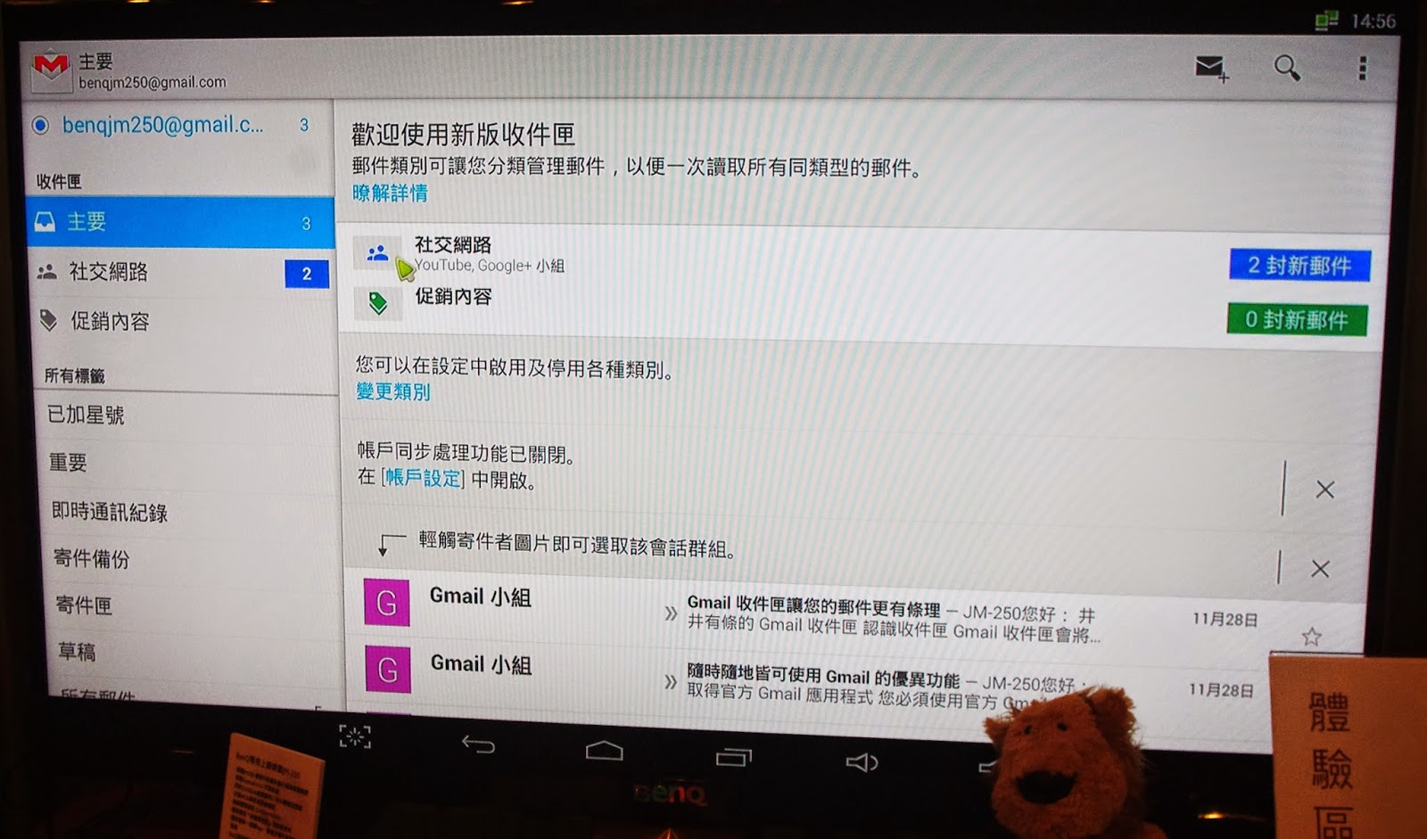 ▼ 用 BenQ JM-250 收發 Gmail 畫面,利用無線遙控鼠操作,我用起來感覺跟滑平板沒兩樣,BenQ JM-250 給我非常棒的操控感覺。