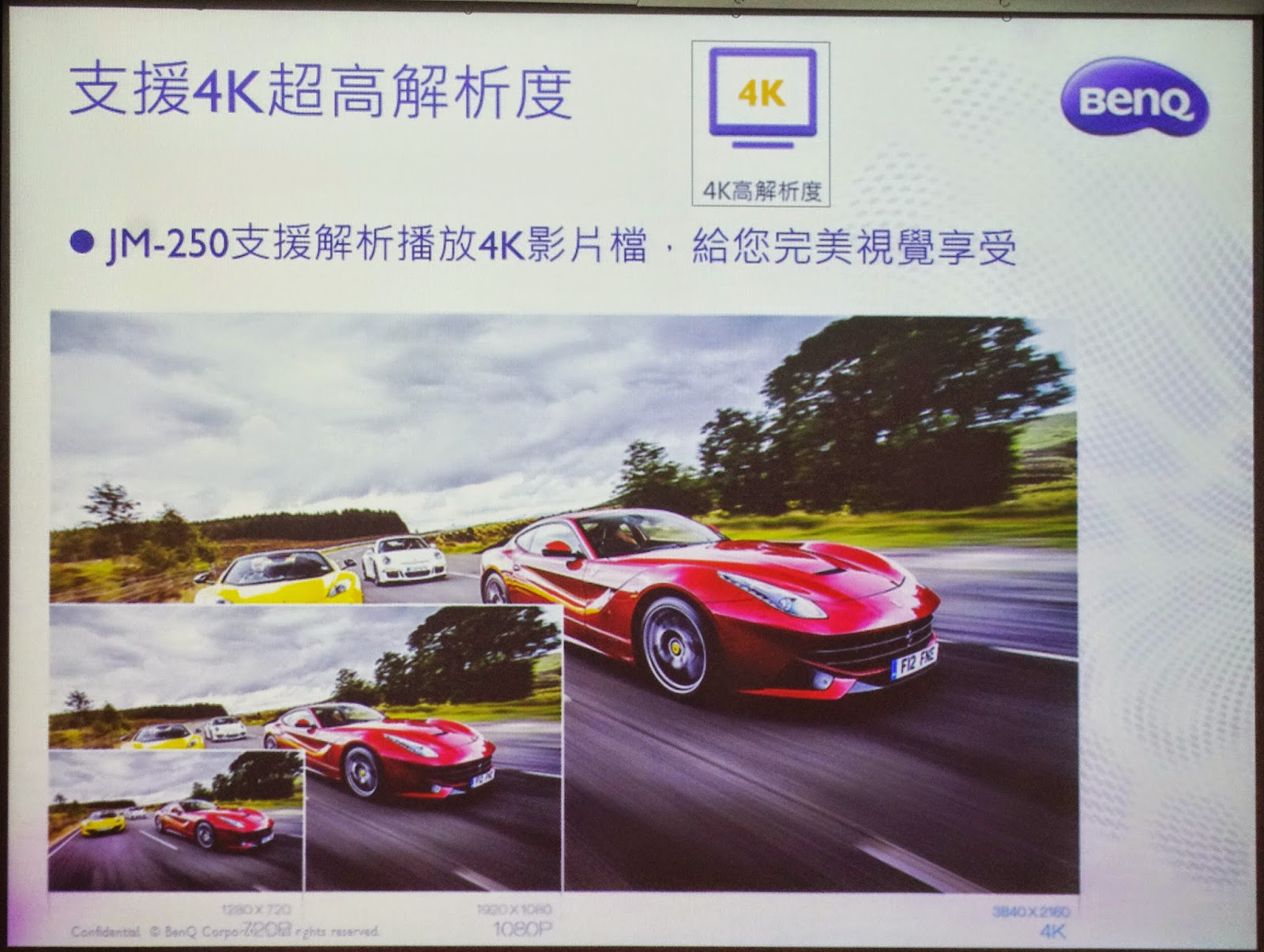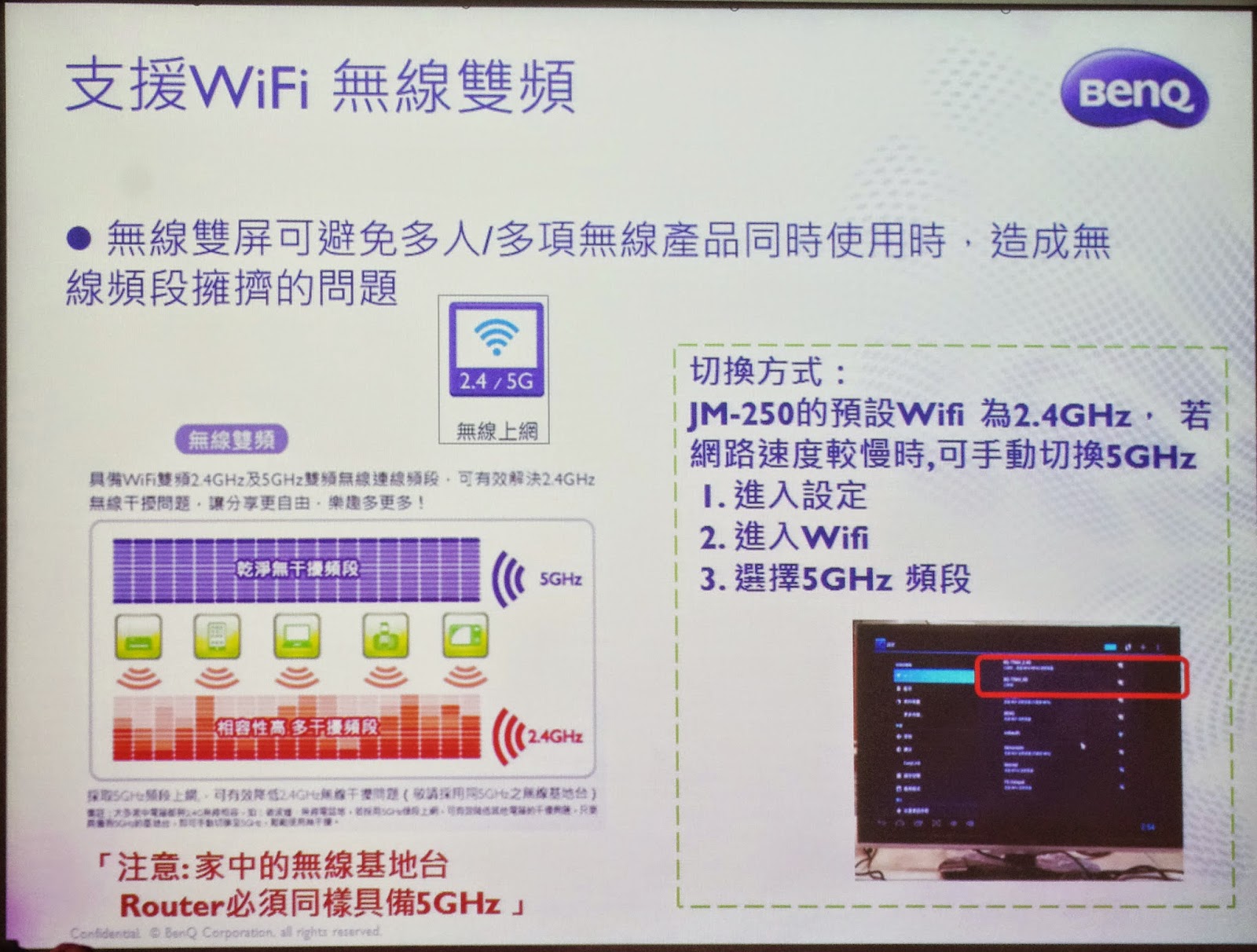 ▼ BenQ JM-250 具有 2.4G 和 5G WiFi 雙頻段,且可以播放 4K2K 的影片。
