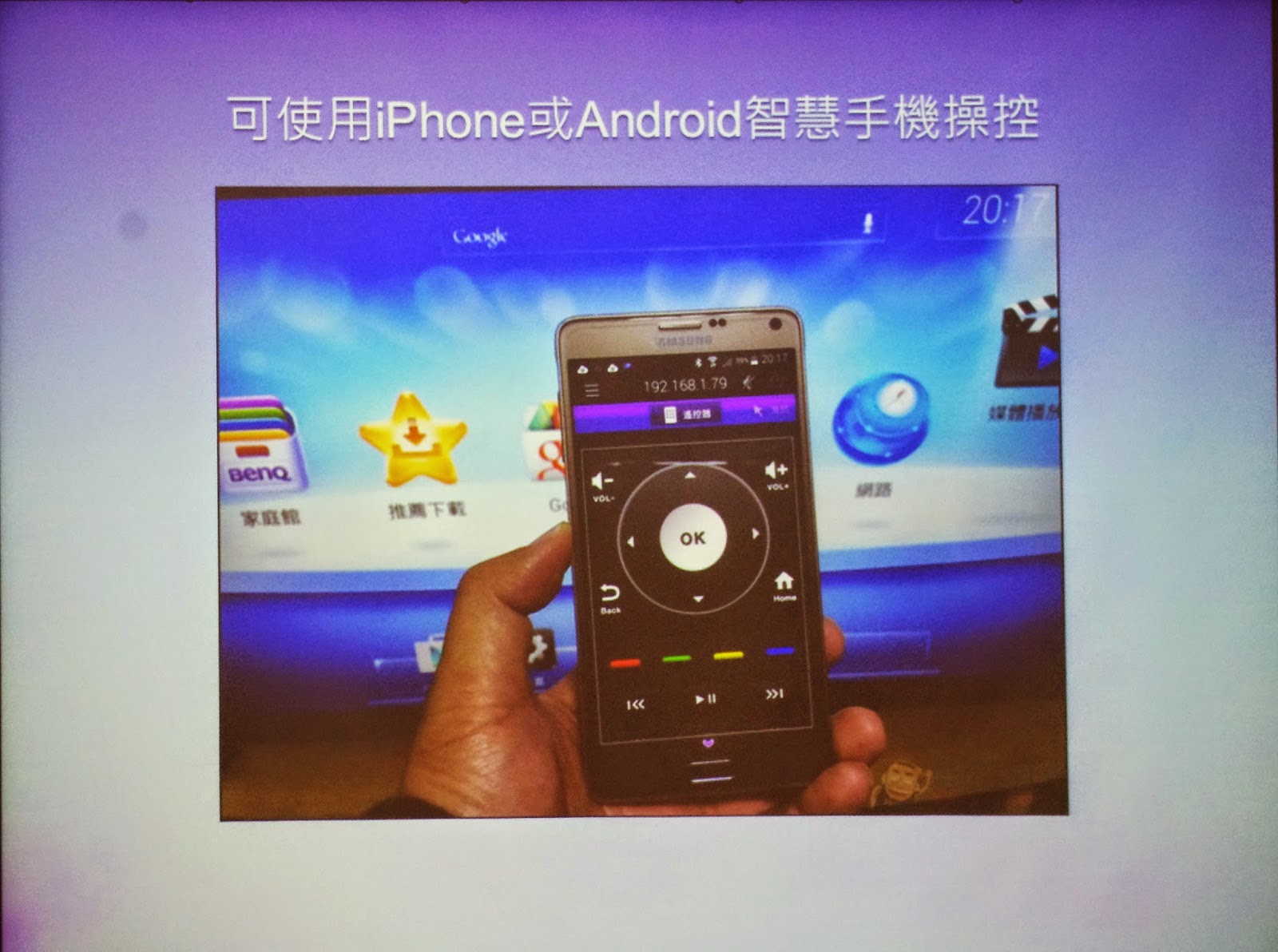 ▼ BenQ JM-250 可以使用 iPhone 或 Andriod 手機來當遙控器。