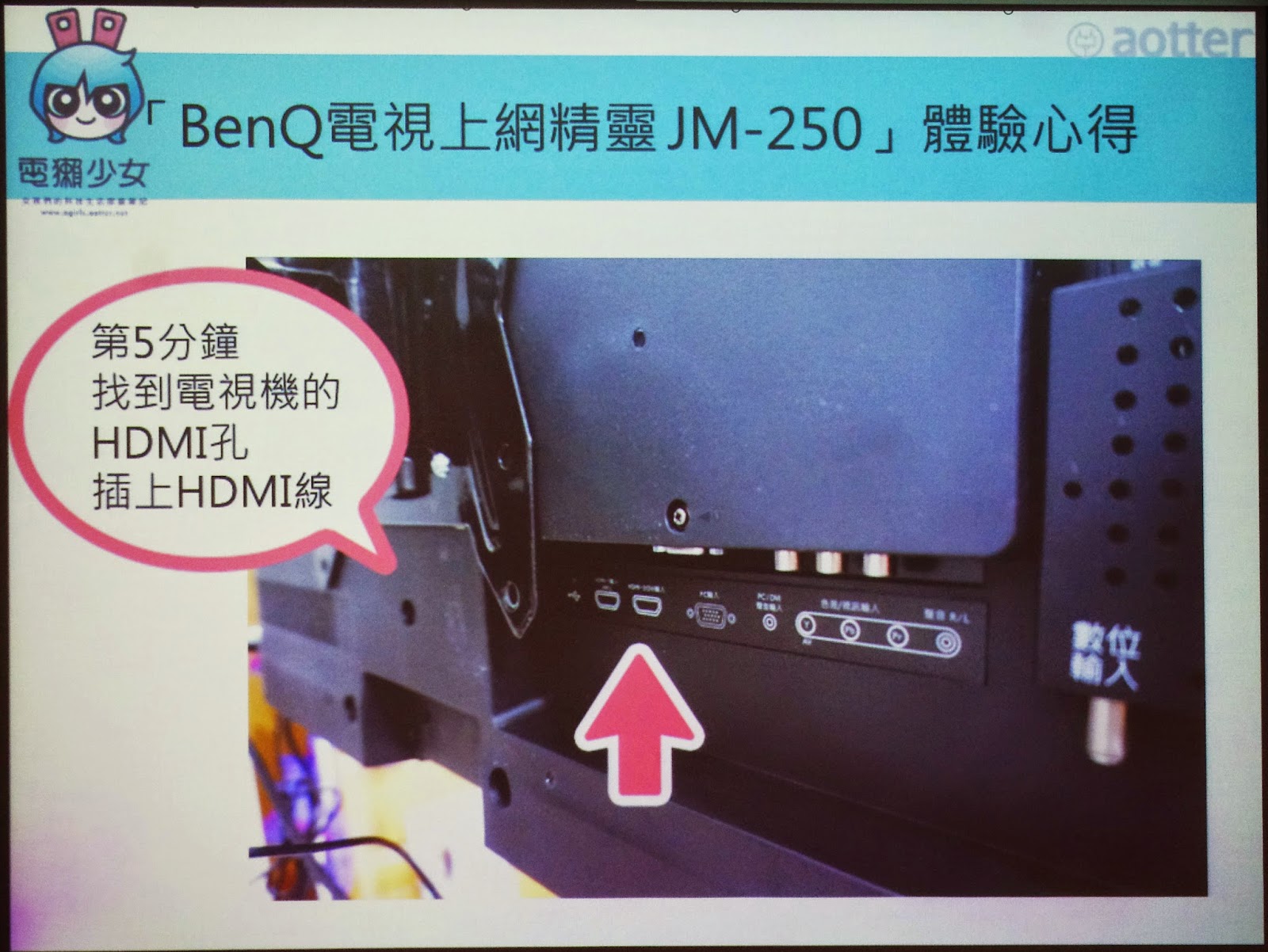 ▼ 七分鐘快速裝好 BenQ JM-250 ~ 第 5 分鐘 : 用 HDMI 線來連接電視和 BenQ JM-250