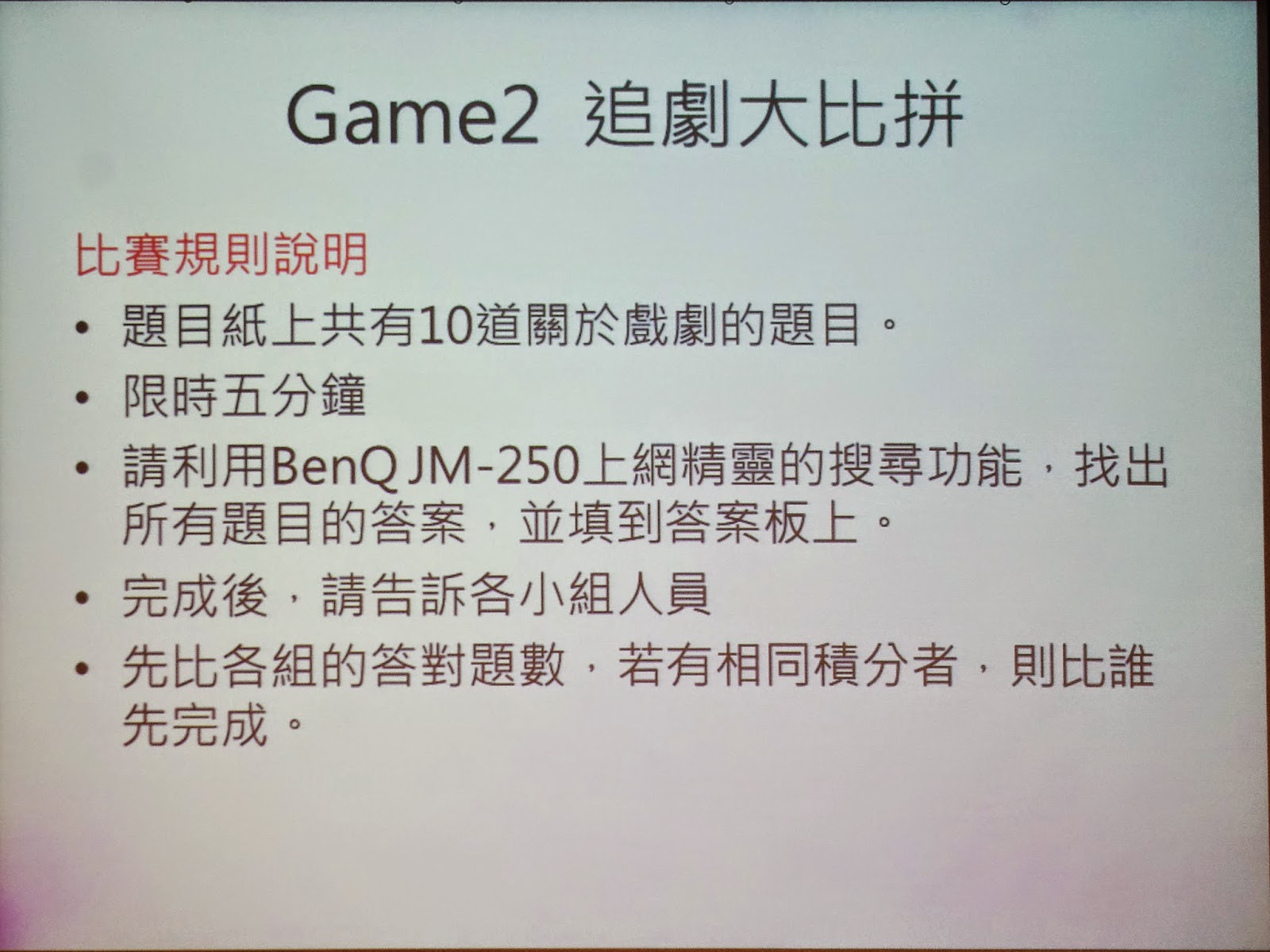 ▼ 活用 BenQ JM-250 電視上網精靈的那就可以查到答案,幾乎大家都答對很多。不過最後還是由我們這一組贏了。