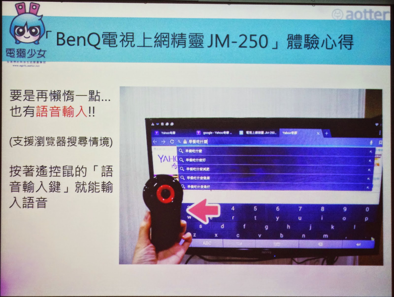 ▼ BenQ JM-250 用無線遙控鼠操控使用起來感覺就跟用一台大台電腦一樣好用,同時還可以做語音輸入,像 Siri 一樣,真的是超方便。