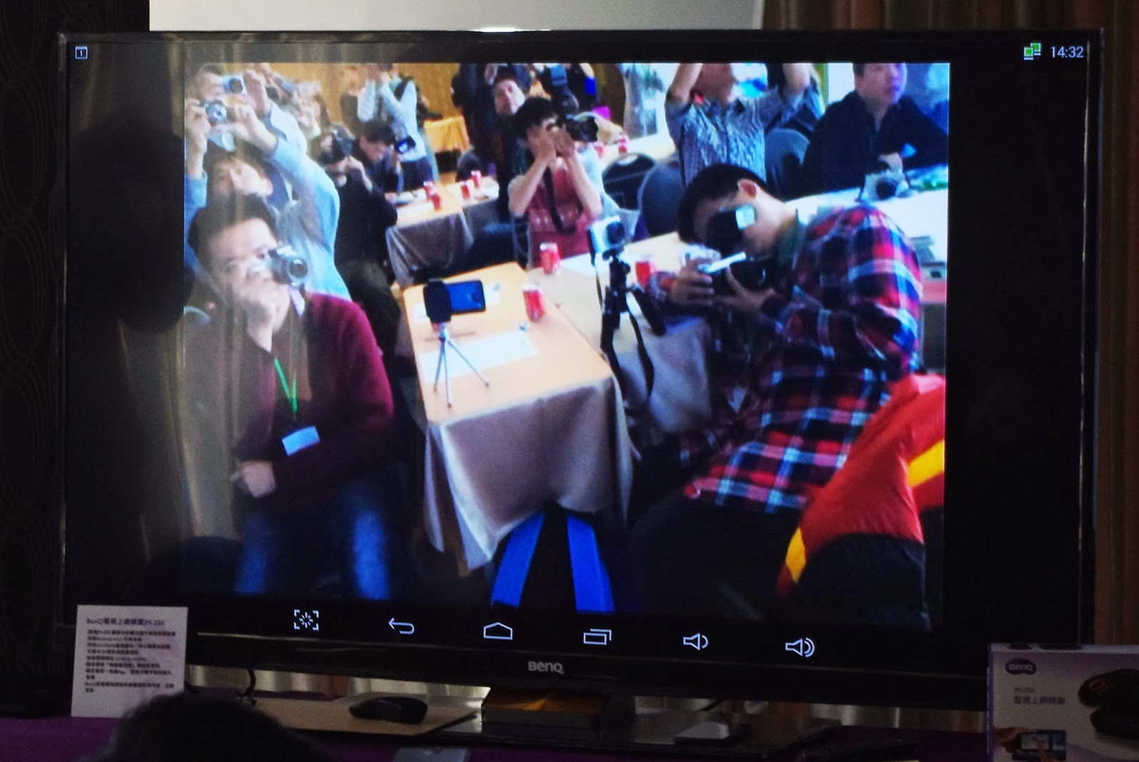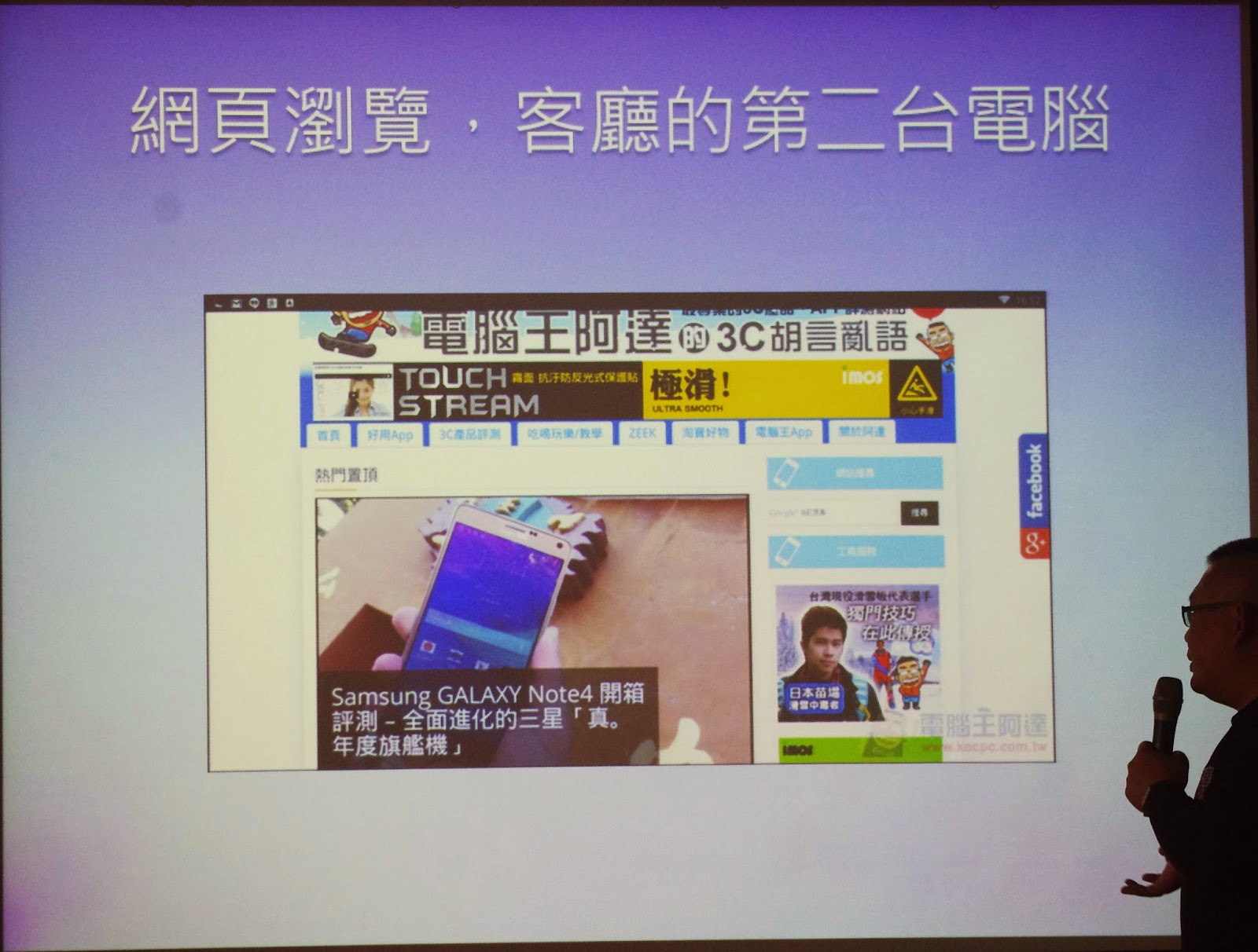 ▼ 電腦王阿達同時也利用 iPad 中的 EZ Cast ,將現場的 Live 視訊經由 BenQ JM-250 投射到大螢幕電視上頭。