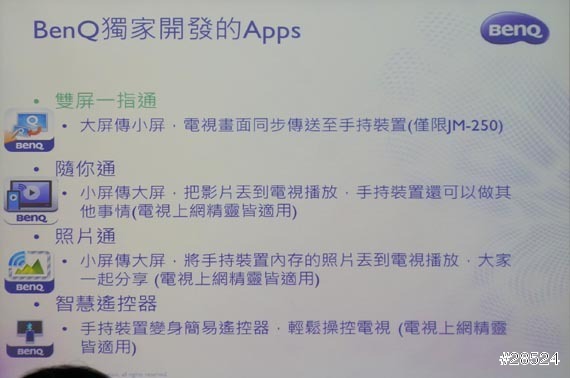 說到底,我覺得這個才是最可怕的,BenQ一口氣打造四款BenQ JM-250御用APP,都只是為了讓我們可以將BenQ JM-250融入生活並且100%的使用,不管雙屏一指通,或是隨你通,照片通,智慧遙控器,都可以輕鬆上手,而且是時下最流行的Android跟iOS同步重砲出擊,聯手打造高規格影音娛樂視聽室,傳統電視也可以輕鬆變身為智慧型電視,BenQ對BenQ JM-250的用心,我看到了!!你呢?