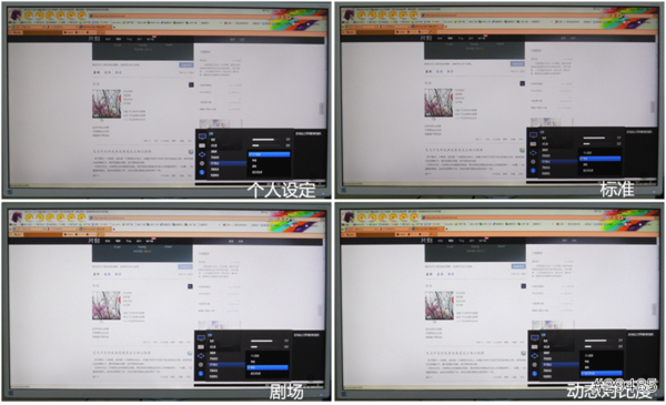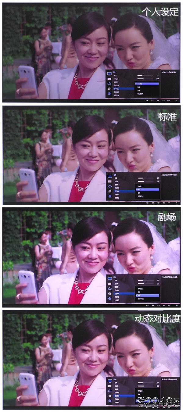 他有四个模式,这是视频的画面对比,细观察图片就能发现,在剧场模式下看电影,人物色彩更浓郁,人物整个轮廓更有立体感,画面表现更细致,对于看电影再好不过了 。所以看电影要开剧场模式哦